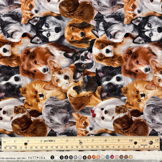 Dog fabric - Dogs & Blooms - 100% Cotton - Yorkie Pug Frenchie Spaniel Jack Russel Terrier