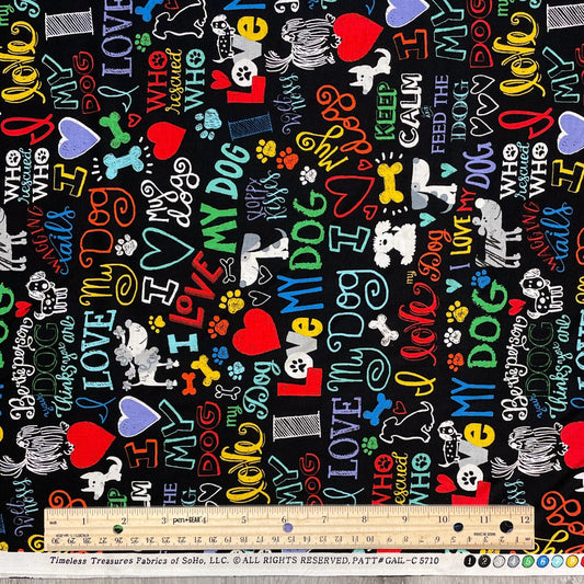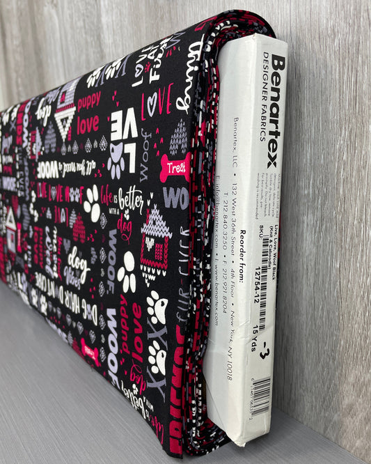 Dog Fabric - Live, Love, Woof Black from Benartex 100% Cotton Fabric