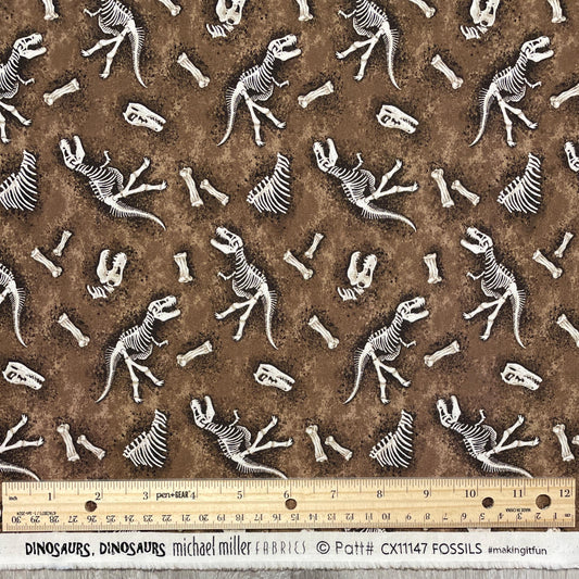 Dinosaur Fossil fabric - Brown - Michael Miller Dinosaurs - 100% Cotton