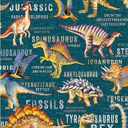 Dinosaur fabric by the yard - Dinosaur Land Teal - Michael Miller - 100% Cotton
