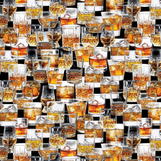 Drink Glassware Fabric - Benartex Top Shelf collection - 100% Cotton - Bar Glasses