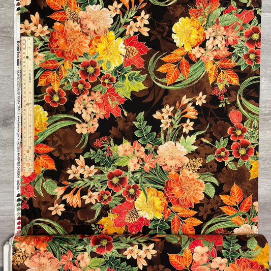 Fall Floral Fabric - Metallic Accents - Harvest Festival