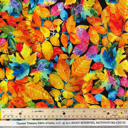 Electric Colors Fall Leaves Fabric - Nature's Glow