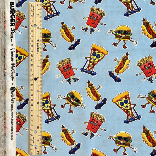 Fast Food Fabric - Burger Bar - 100% Cotton - 3 Wishes - Junk Food Pizza Hotdog Hamburgers Fries