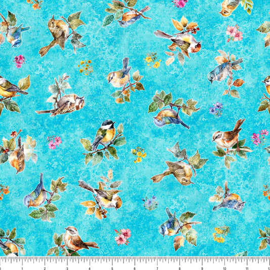 Floral Bird Fabric - Birdsong Collection - QT Fabrics - 100% Cotton - Aqua 2600-30279-Q