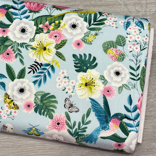Floral Bird Fabric - Tropical Menagerie - 7380-11 Seaglass - 100% cotton - StudioE