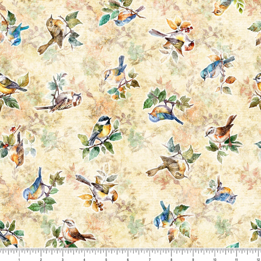 Floral Bird Fabric - Birdsong Collection - QT Fabrics - 100% Cotton - Tan 2600-30279-A