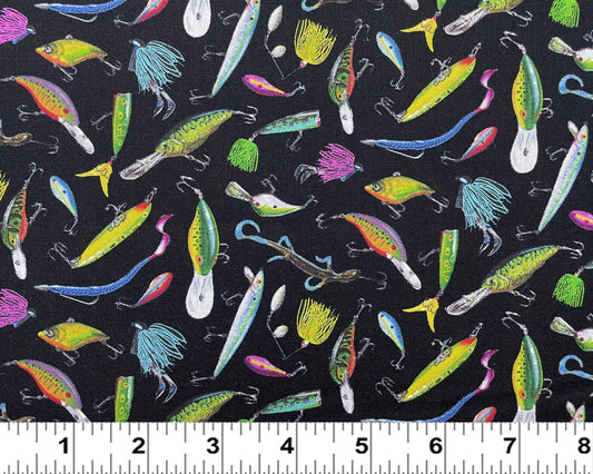 Fishing Lure Fabric - Benartex - 100% Cotton - Lake Life