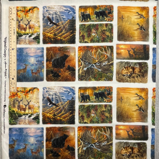 Forest Animal Fabric - Countryside Patch 22200-MLT - 3 Wishes - 100% Cotton Fabric - Whitetail Country - Bear Deer Fox Bird Eagle