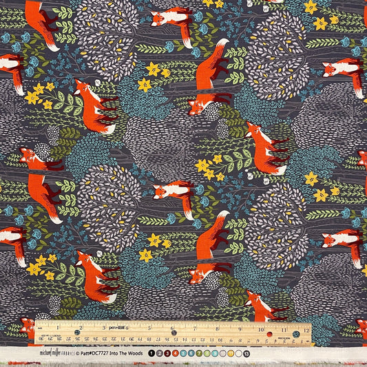 Fox Fabric - Into the Woods GRAY - 100% Cotton - Michael Miller
