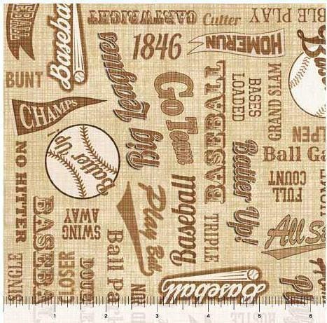 Baseball fabric - Text - Tan - 100% Cotton - QT Fabrics - Bases Loaded - Sports