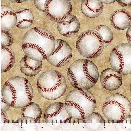 Baseball fabric - Tan - 100% Cotton - QT Fabrics - Bases Loaded - Sports