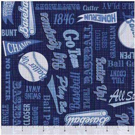 Baseball fabric - Text - Navy- 100% Cotton - QT Fabrics - Bases Loaded - Sports