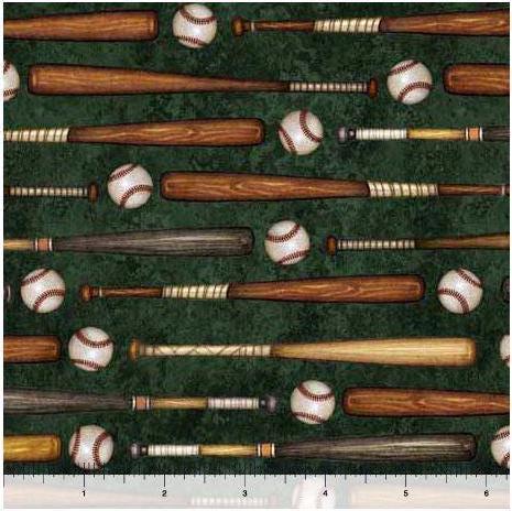 Baseball fabric - Bats & Baseballs - Forest- 100% Cotton - QT Fabrics - Bases Loaded - Sports