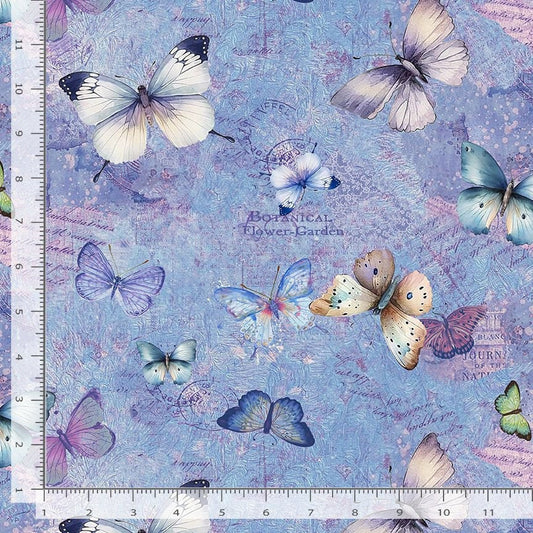 Pretty Butterflies and Text fabric - 100% Cotton - Butterfly Dreams Collection BUG-CD2907 BLUE