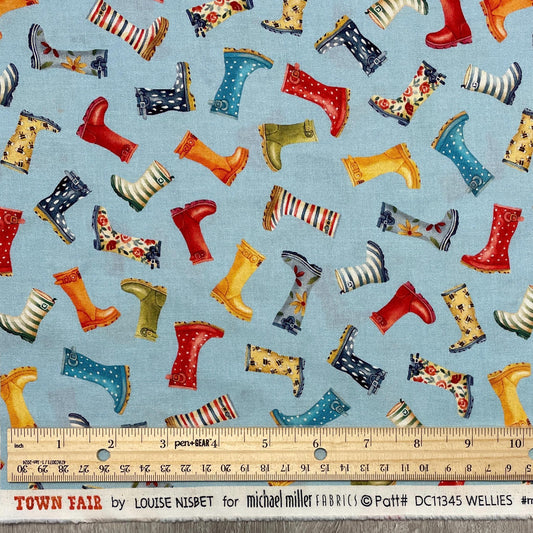 Rain Boots Fabric - Town Fair Collection - 100% Cotton - Galoshes Gardening Shoes Wellies Wellington Boots Farm Quilting Fabric