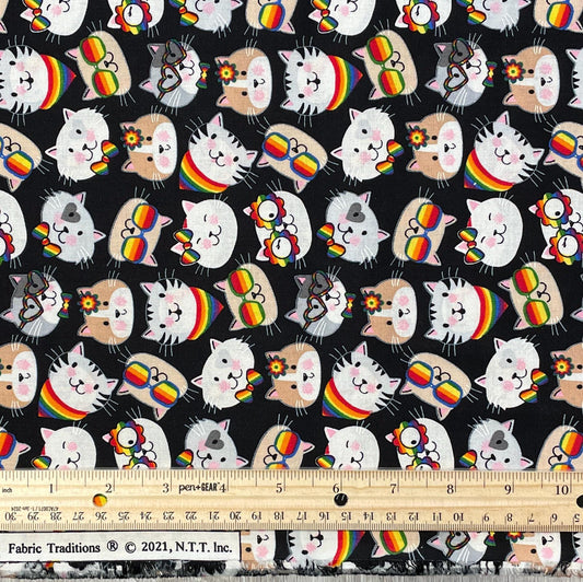 Rainbow Cat Fabric by the yard - Cool Cats Toss