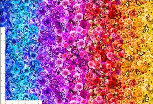 Rainbow Butterfly Fabric - Timeless Treasures - 100% Cotton - CD3630 - Ombre floral