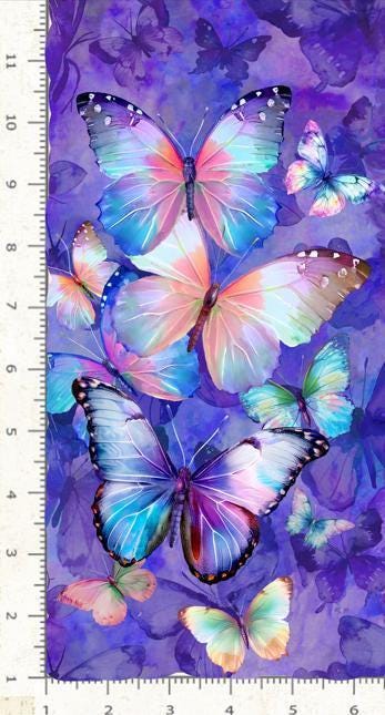 Purple Butterfly Fabric Panel - 24" x 44" - 100% Cotton - Multicolor butterfly quilting cotton