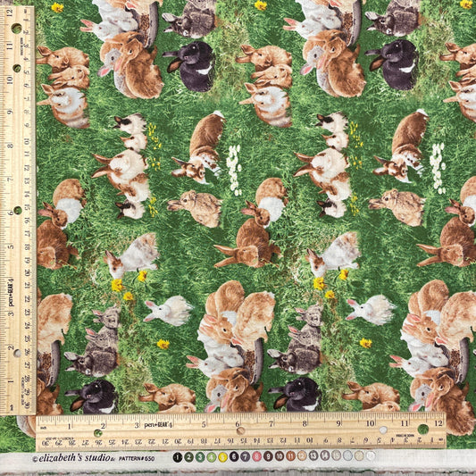 Realistic Bunny Rabbit fabric - Farm Animals - 650Green