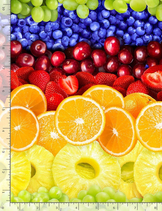 Realistic Fruit Bowl Fabric - 11" Stripe - Digitally Printed