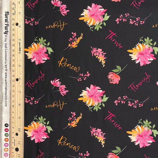 Black Word Toss - Wilmington Prints - 100% Cotton - Floral Party Collection