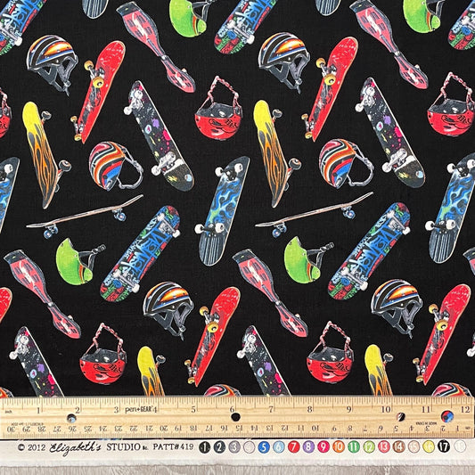 Skateboarding Fabric - 419-Black - Elizabeth's Studio Sports Collection - 100% Cotton