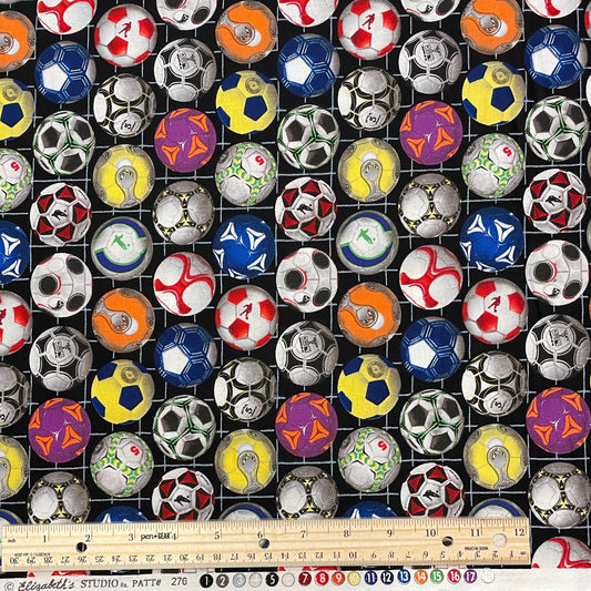 Soccer Fabric - 276-Black - Elizabeth's Studio Sports Collection - 100% Cotton - Colorful soccer balls