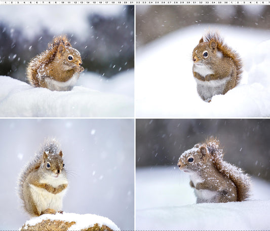 Secret Life of Squirrels II FQ Fabric Panel 36" x 44" - Clothworks - Y4220-116 Mist Gray