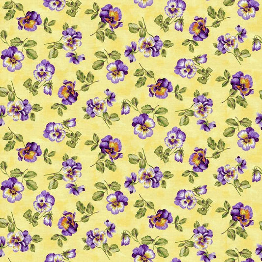 Spring Bouquet Pansy Fabric - Yellow - Paintbrush Studio - 100% cotton - Pansies