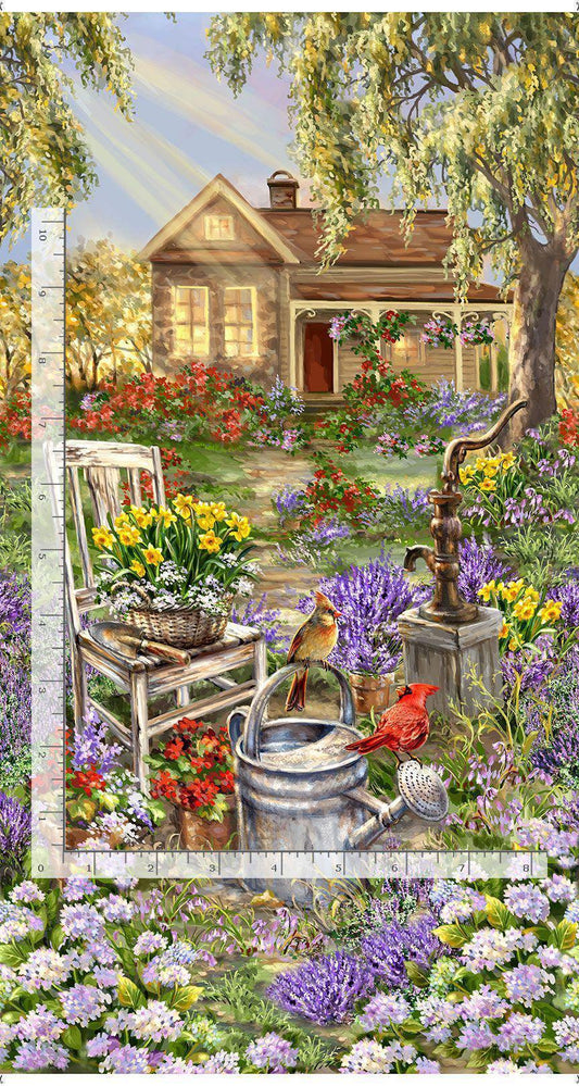 Spring Song Fabric Panel 24" x 44" - 100% cotton - Timeless Treasures - floral material quilting gardener