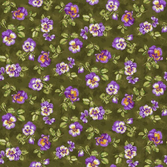 Spring Bouquet Pansy Fabric - Green - Paintbrush Studio - 100% cotton - Pansies