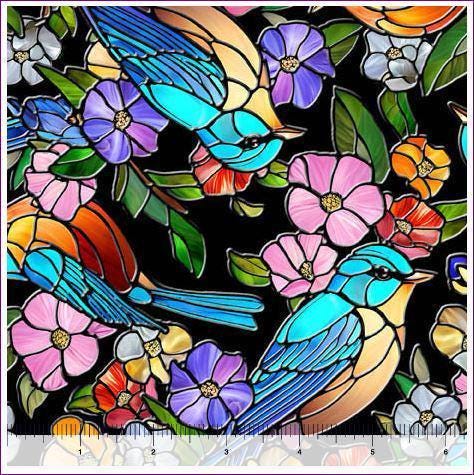 Stained Glass Bird Fabric - Sunlit Birds Collection - QT Fabrics - 100% Cotton - 30793-J
