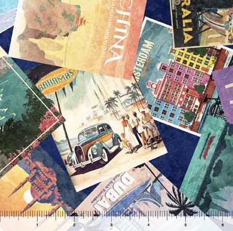 Travel Fabric - 100% Cotton - Globetrotter Travel Posters - QT Fabrics