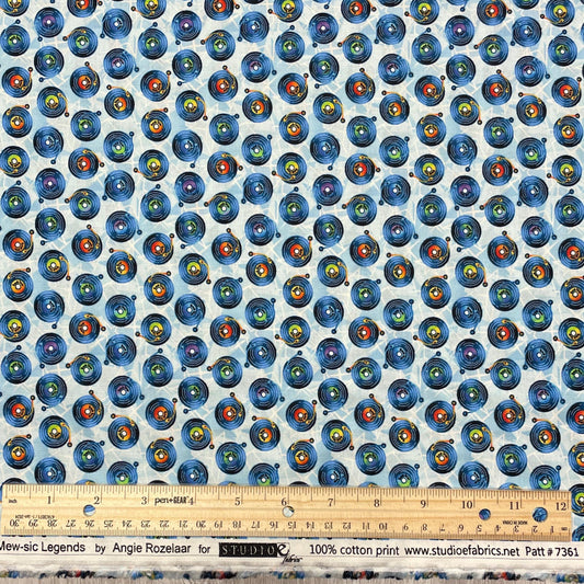 Vinyl Record Fabric - 7361-17 Blue - Mew-sic Legends by StudioE - Multicolor record print by the yard - musician LPs Albums 50s 60s 70s 80s