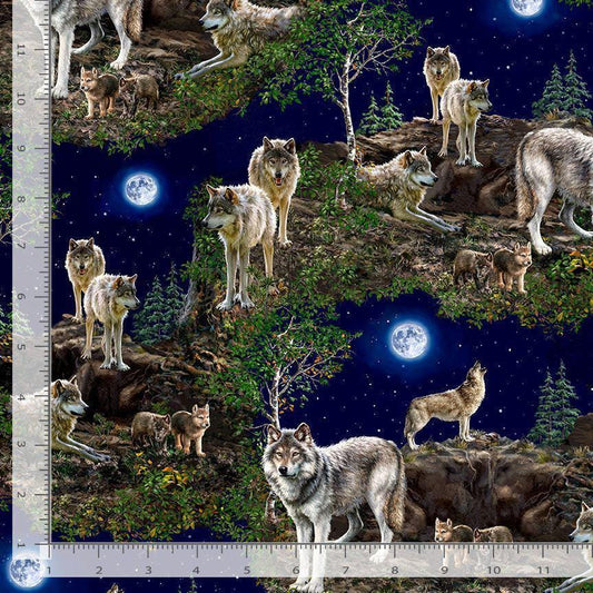 Wolf fabric - Wolf Scenic - Timeless Treasures - 100% Cotton Fabric