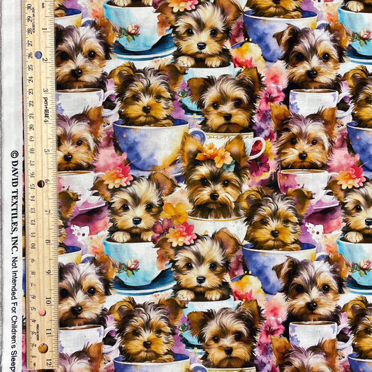 Yorkie Teacup fabric - Foust Exclusive Print - 100% Cotton