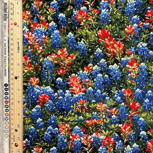 Bluebonnets and Indian Paintbrush Flowers - Michael Miller - 100% Cotton - Texas Wildflowers