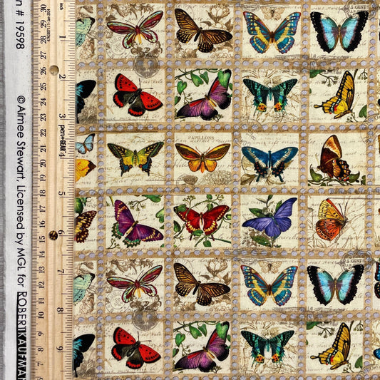 Butterfly Stamp Fabric - Robert Kaufman Library of Rarities - 100% Cotton - ATXD-19598-200 VINTAGE