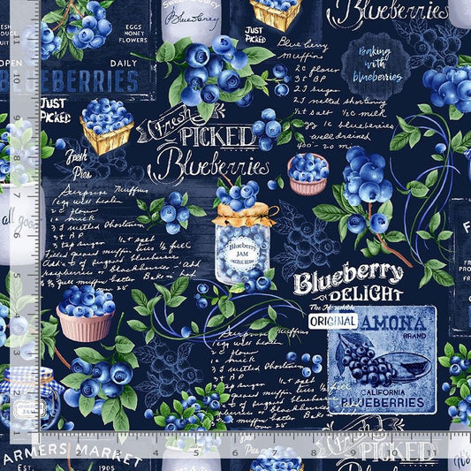 Blueberry Hill - Pick your fabric by the 1/2 yard - Benartex - 100% Cotton Fabric - food theme quilt material