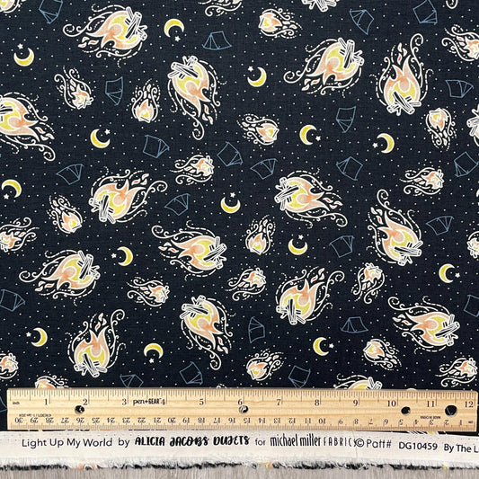 Campfire - By the light of the fire in Navy - Light Up My World collection by Michael Miller fabrics - 100% Cotton Fabric