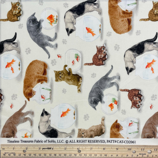 Cat Fabric - Cats and Fish Bowl - You had me at Meow