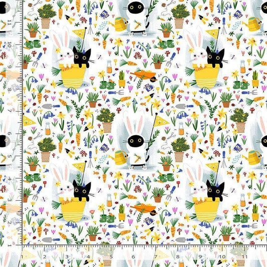 Cat fabric - Dear Stella - Bunny Slippers - Sweet Purrennials - 100% Cotton - Garden pot