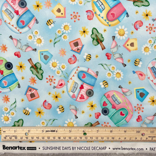 Camper fabric by the yard - Sunshine Campers Blue - Benartex - 100% cotton - Sunshine Days