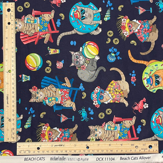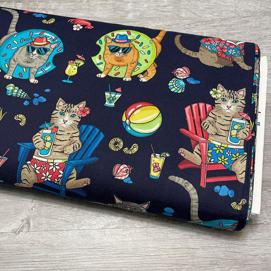 Cat Fabric Panel 43" x 36" - 100% cotton - Feline Fantasia - Small Cat Picture Patches - Navy