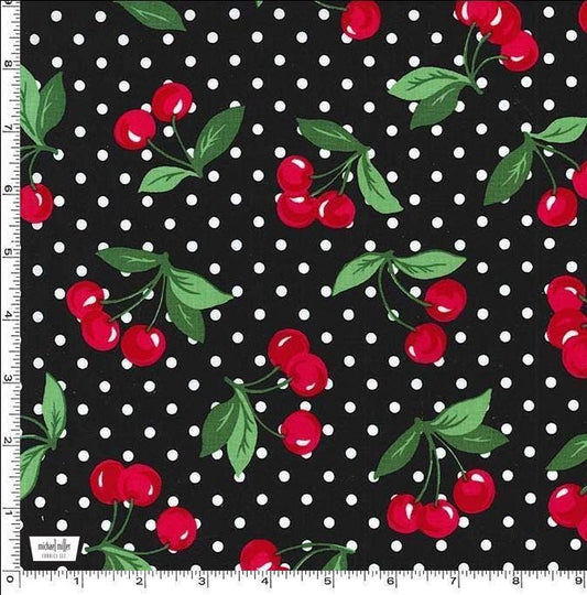 Cherry fabric - Cute Cherries Black - 100% Cotton - Kanvas Studios for Benartex