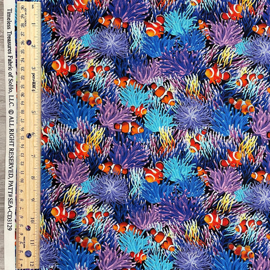 Clown Fish Fabric - Timeless Treasures - Ocean Life - 100% Cotton - Beach Quilt Sea Anemone Coral Reef