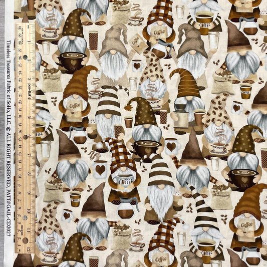 Coffee Gnome Fabric - Timeless Treasures - Espresso Yourself collection - 100% Cotton Fabric - coffee material