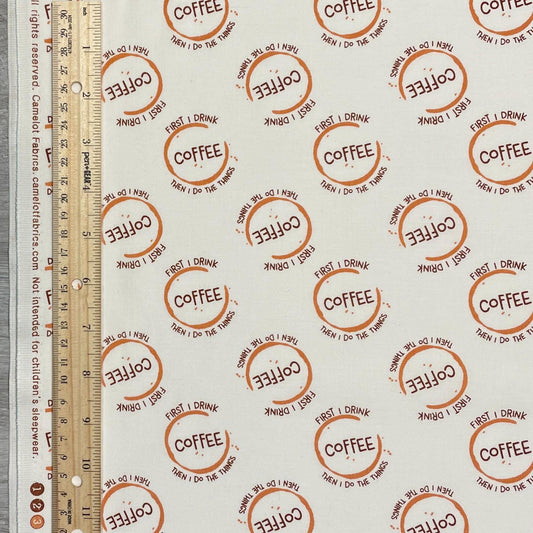 Coffee fabric - Fresh Brewed Words Cream by Benartex - 100% Cotton - Cafe theme Americano Latte Mocha Hot Coffee Quilting Cotton