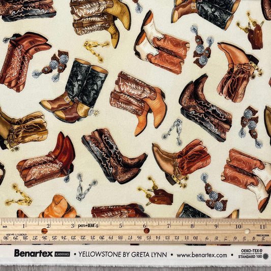 Cowboy Boot Fabric - Yellowstone - 100% Cotton - Kanvas for Benartex - Country Western Cowgirl Farmer Rancher Quilting Material